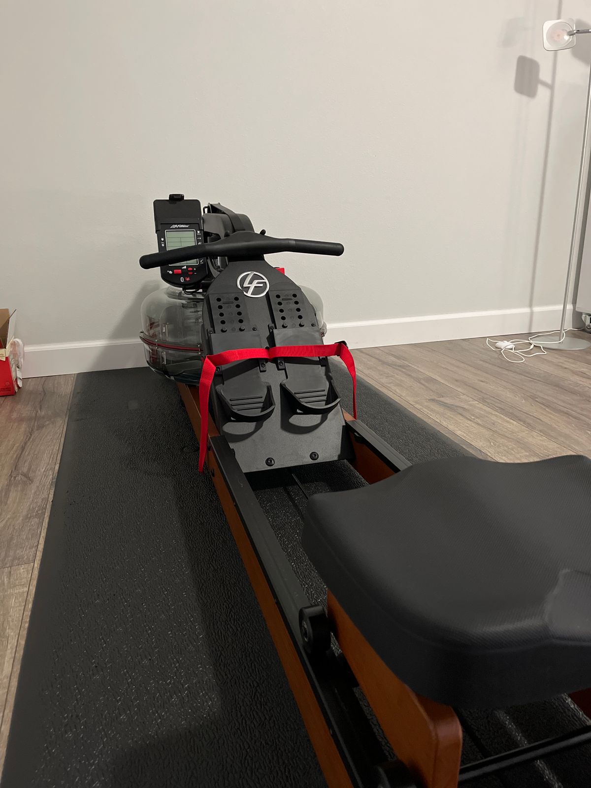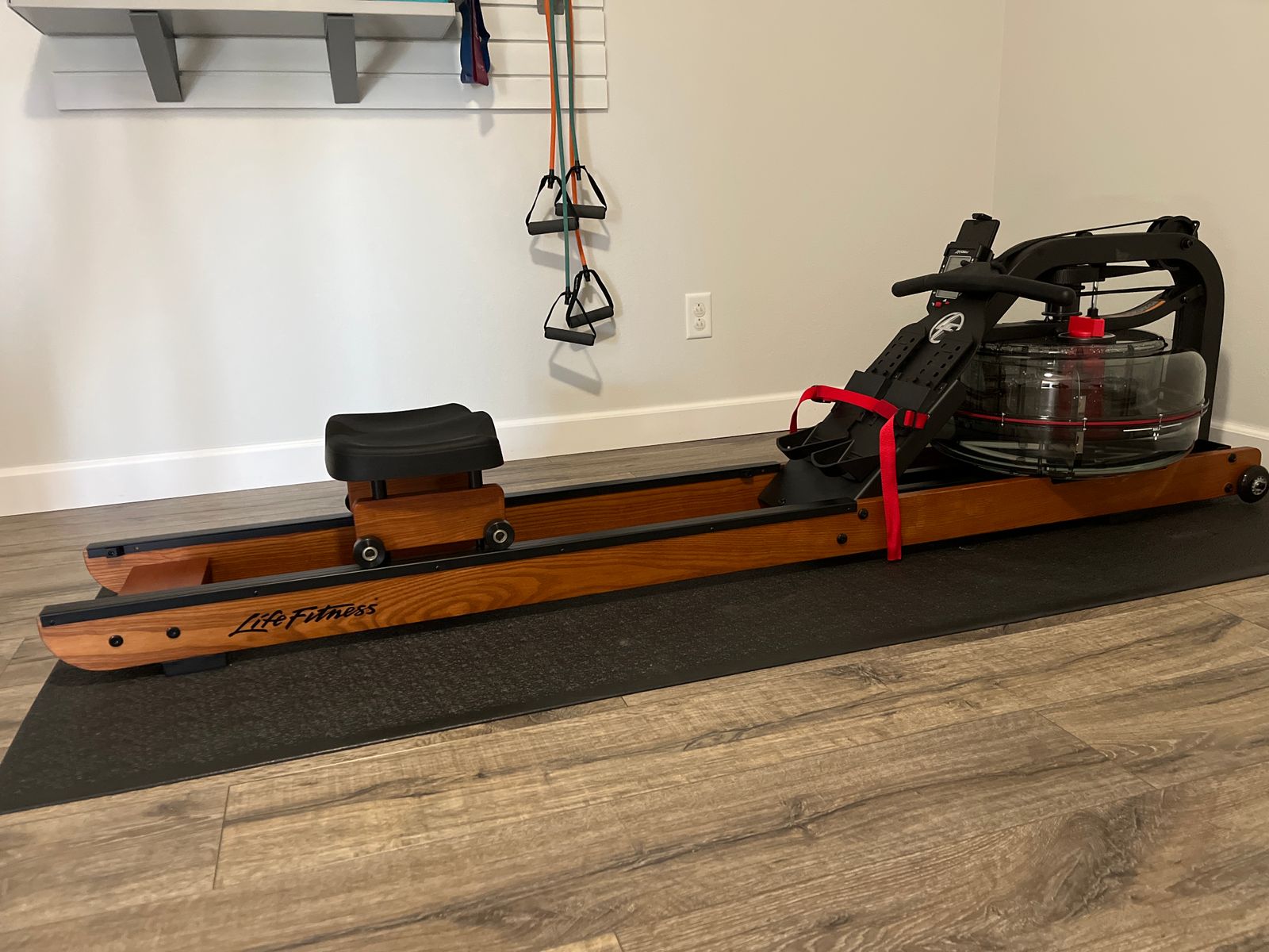 This is an awesome rower. It literally glides on the rails and the water sound is a nice feature. It also looks fantastic in my cardio room. Added the Life Fitness medicine balls and kettle bells too. Very happy!
