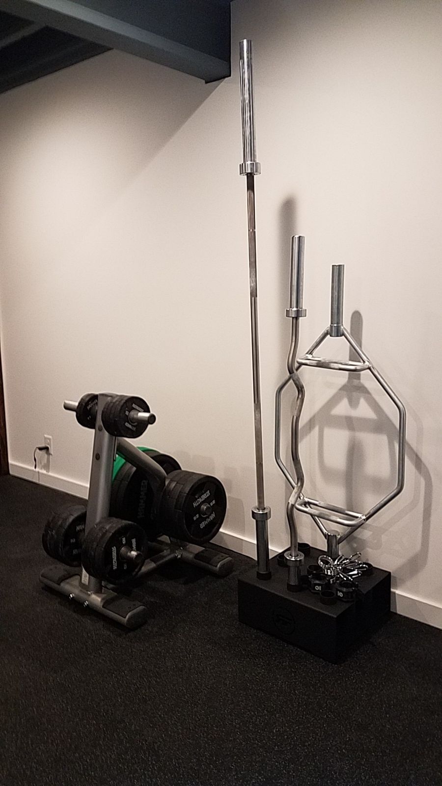 A simple and cost effective way to secure Olympic plates with a tight robust fit and resistant to wear and tear.